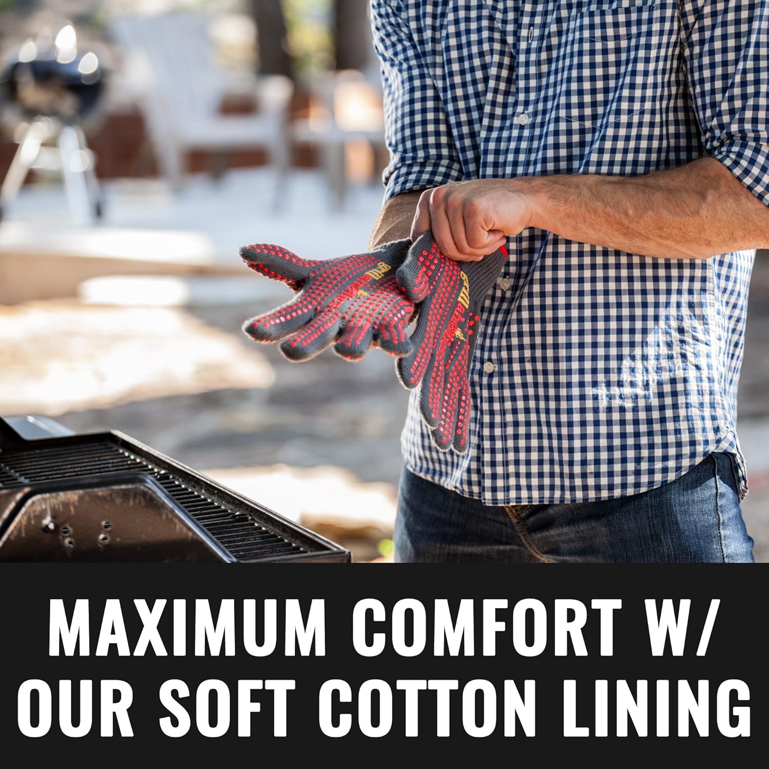 - Only for the True Grillaholics: Let’s be hone - everything tastes better on the grill. Protect your most valuable grilling asset with our heat resistant cooking gloves. With our signature ThermoMatrix silicone pattern you get extra heat resistance and non-slip grip.