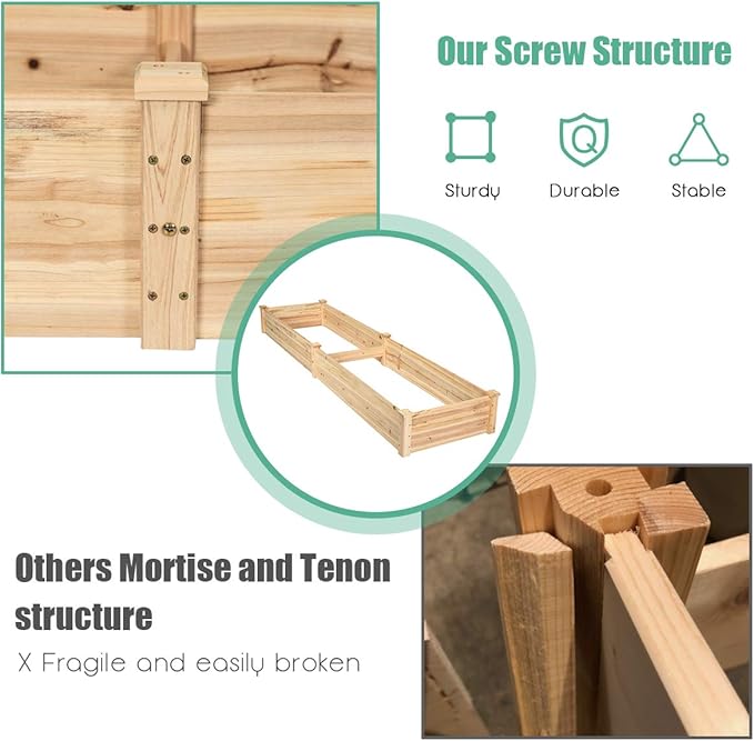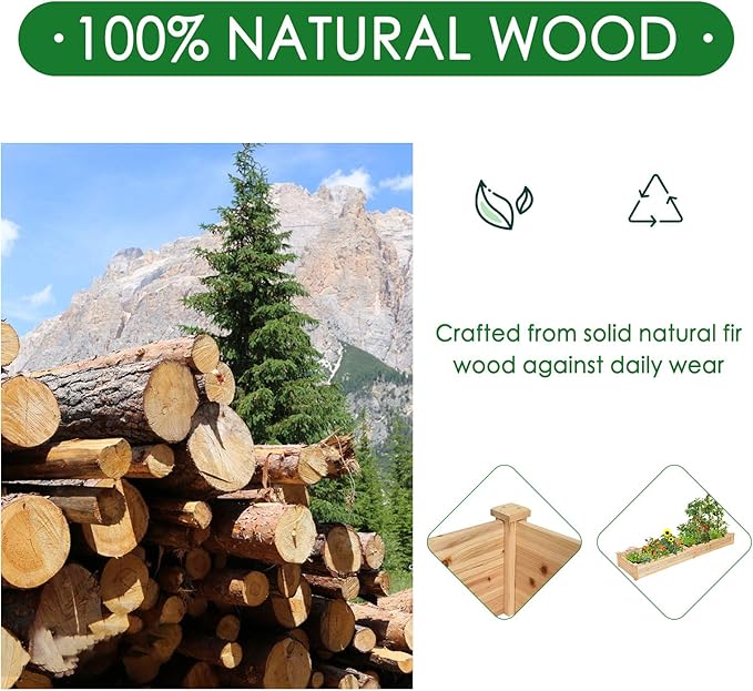 - 【10 Inch Deep Planter Raised Beds】- The whole construction is made of long-lasting solid fir wood which is stable and durable enough to strongly support the weight from the garden bed itself and plant.