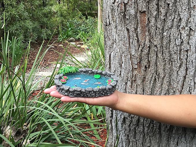 GlitZGlam KOI Miniature Pond for a Fairy Garden. A Miniature Pond for a Miniature Fairy Garden and Enchanted Garden Accessories