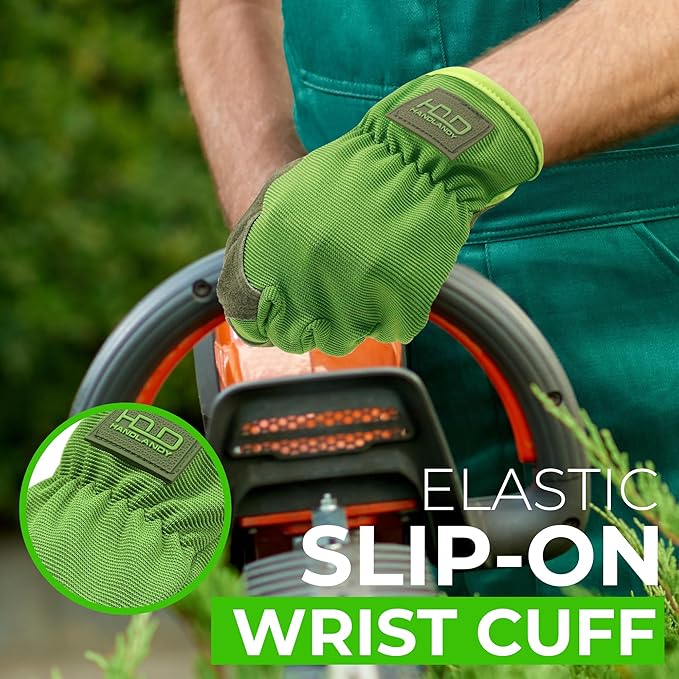 HANDLANDY Leather Work Gloves for Men & Women, Reinforced Durable Garden Gloves, Cowhide Working Glove for Gardening