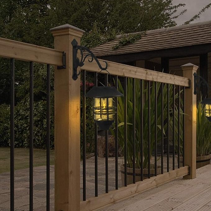 2 Pcs 8-Inch Decorative Iron Lantern Hooks for Wall Hanging Mason Jar Sconces Outdoor Solar Lights, Black