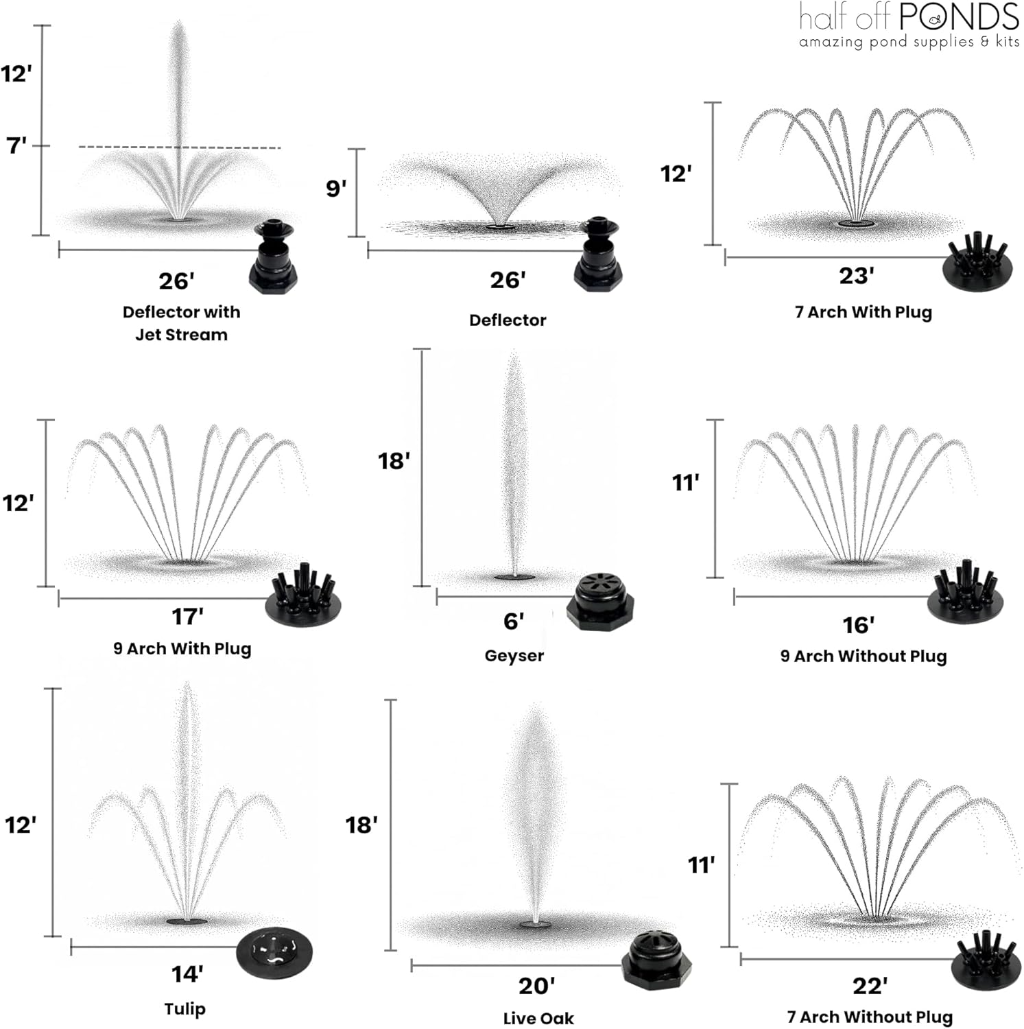 - Customizable Spray Patterns – Includes a quick-release nozzle flange and 13 interchangeable fountain spray patterns to enhance your landscape and match your pond’s style.