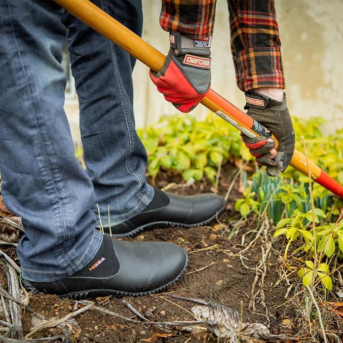 HISEA Unisex Waterproof Garden Shoes, Men's Rubber Rain Boots Women's Ankle Rain Shoes Neoprene Camp Booties Outdoor Slip-On Footwear for Gardening, Farming, Camping, Car Wash, Lawn Care and Yard Work