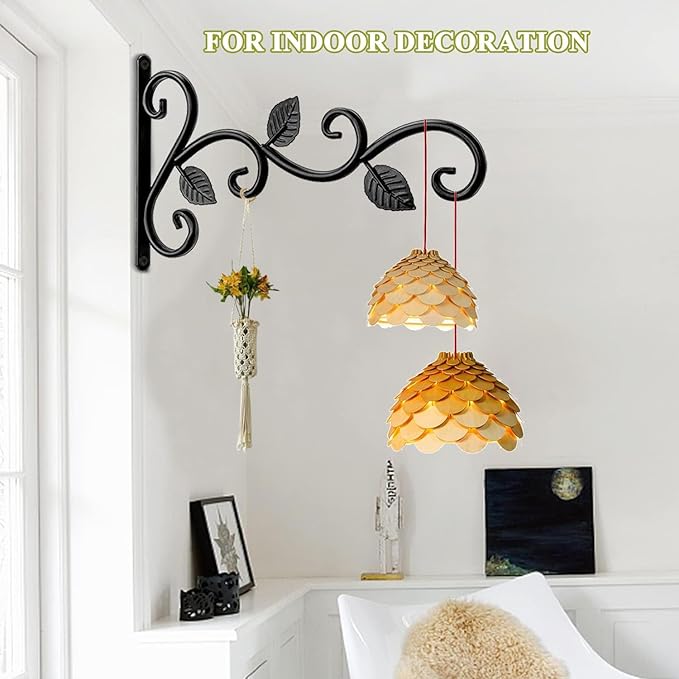 - 🍀【DECORATE YOUR HOUSE MORE BEAUTIFULLY】With the unique nostalgia of vintage iron art for compatible decorative, this wall plant hooks is very great for hanging various flowers, plants, wind chimes, lanterns, bird feeder holiday decorations, string lights and other ornaments to create a landscaping space and charming atmosphere to your indoor-outdoor place.