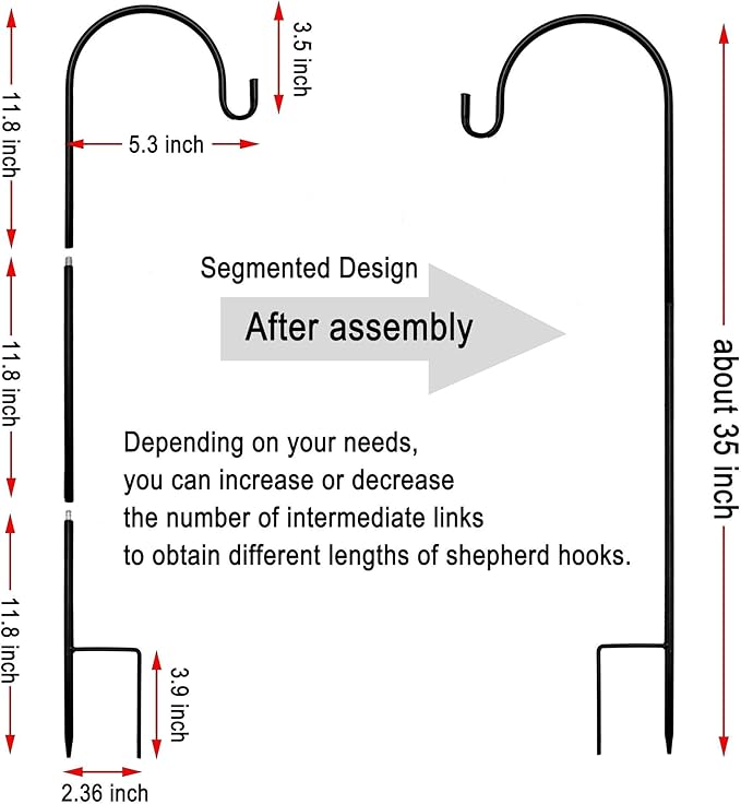 - HEIGHT ADJUSTABLE:You only need to assemble the three sections of the shepherding hook by hand, depending on your needs, you can increase or decrease the number of intermediate links to obtain different lengths of shepherd hooks.