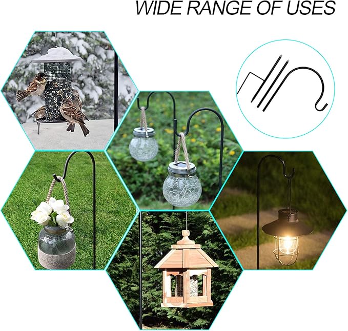 - WIDELY USED: Beautify your outdoor living space by hanging flower pots, solar lights, lanterns, flower baskets, garden lights, mason jars, string lights, wind chimes, ornaments, bird feeders, bird baths, planters. Great for outdoor wedding aisle and ideal for any garden decorations.