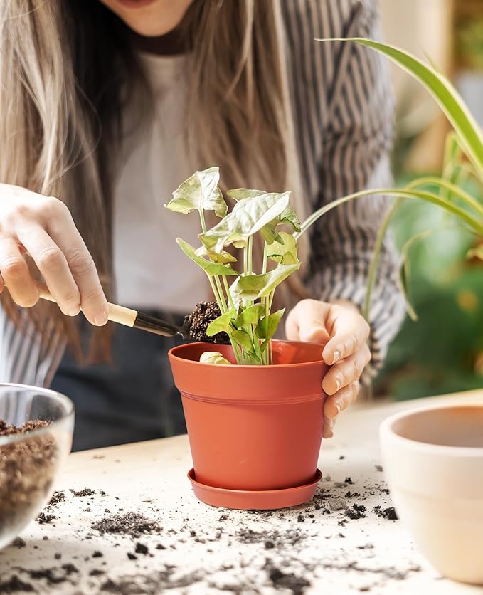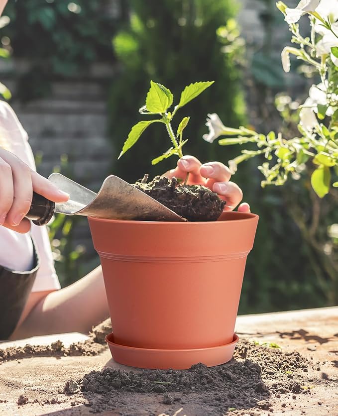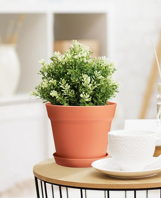Homenote Pots for Plants, 15 Pack 6 Inch Plastic Planters with Multiple Drainage Holes and Tray - Plant Pots for All Home Garden Flowers Succulents (Terra Cotta)