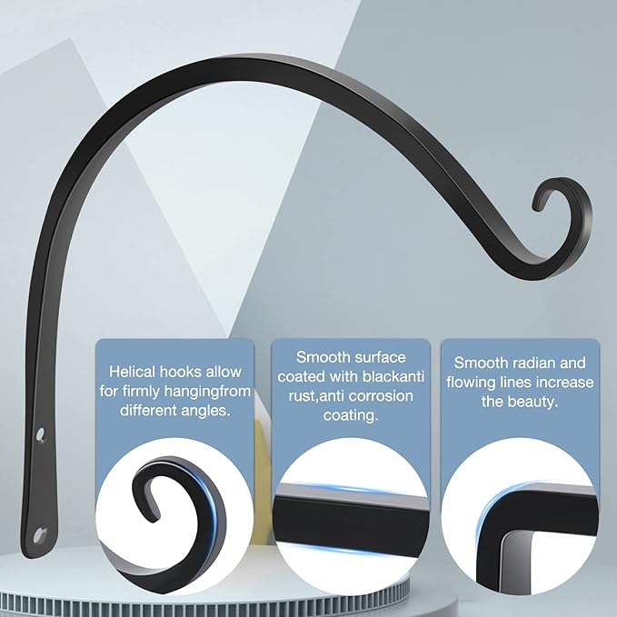 - 【Appearance & Technology】The hanging plant brackets adopt high-quality forging technology, with long and smooth lines. The C-shaped curve shape and black coating give them an elegant and retro feeling, which will make your courtyard more beautiful and charming. The black appearance of the wall plant hanger not only matches well with the wall, but also with the hanging decorations.