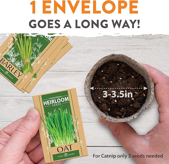 - Grows Indoors Quickly & Easily: Designed for hassle-free indoor cultivation, these seeds germinate quickly—typically within 5 to 7 days—so your cat can enjoy fresh greens in no time. All you need is a small container, soil or potting mix, water, and a bright windowsill. Perfect for any living space, from apartments to homes, it’s a low-maintenance way to enrich your pet’s daily routine.