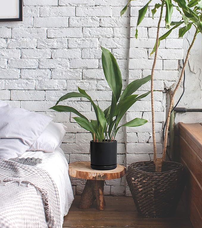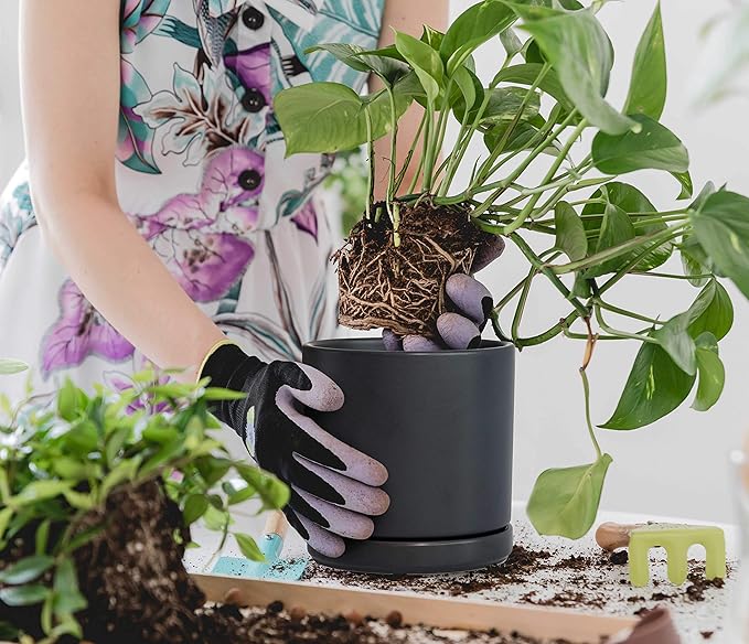 D'vine Dev Set of 2 Plants Pots, 6 Inch Ceramic Planter Pot for Plants with Drainage Hole and Saucer, Black, 94-V-C-2