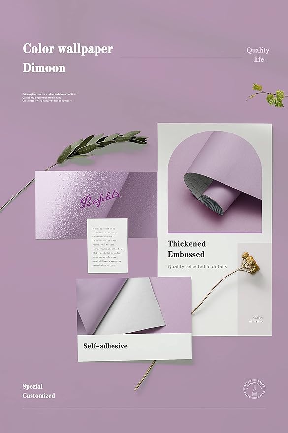 Dimoon 236''x17.7'' Purple Peel and Stick Wallpaper Contact Paper Modern Self Adhesive Wall Paper Removable Renter Friendly Textured Solid Color Shelf Cabinet Vinyl Roll (236''x17.7'',Purple)