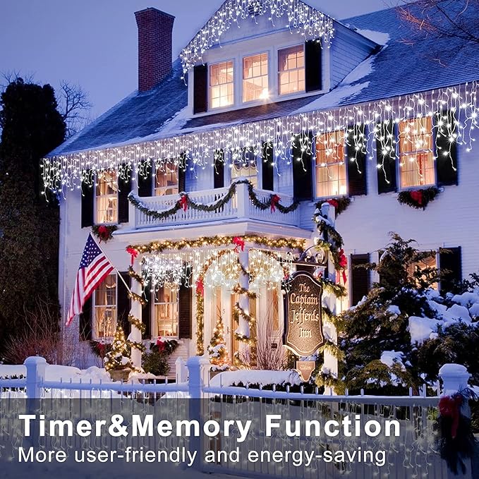 - Waterproof UL Safe to Use: IP44 waterproof grade Christmas decoration string lights are perfect for outdoor use without any damage. Understand any extreme weather, including wind, rain, heavy snow, and hot sun. These super brighter decorations ice lights can be used both indoor and outdoor. Tips: Please note that the US Plug is NOT