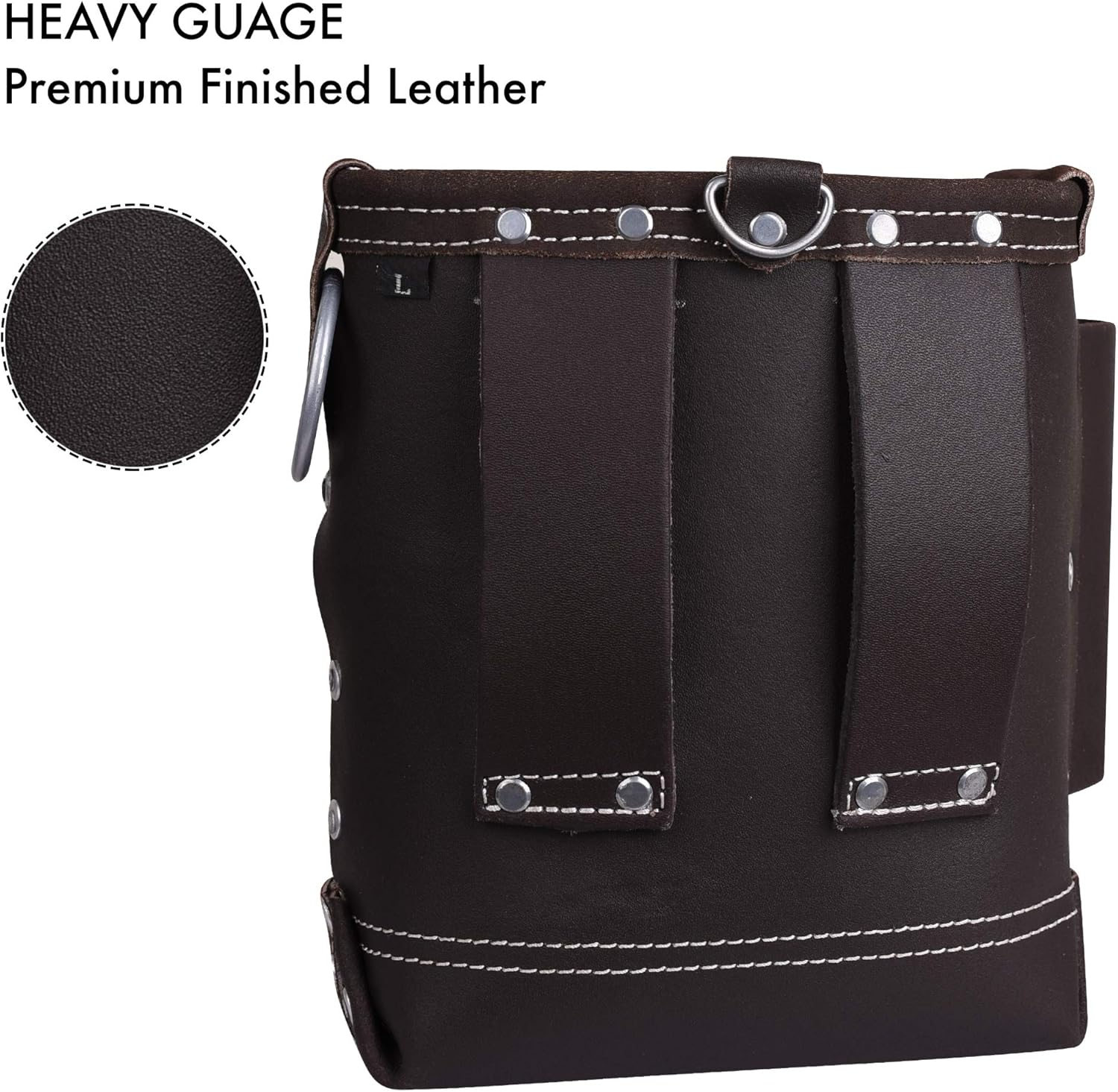 - Heavy-Duty Oil-Tanned Leather – FUERI nail pouch holsters feature rugged oil-tanned leather with reinforced seams and riveted corners for maximum durability. Built to withstand daily wear and heavy loads in tough job conditions.