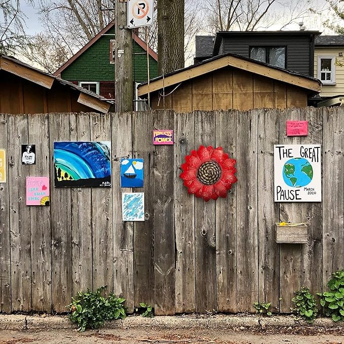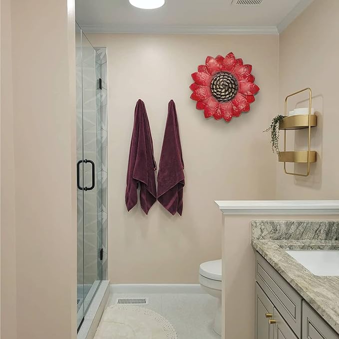 EASICUTI Red Sunflower Metal Flowers Wall Decor Metal Wall Art Decorations Hanging For Indoor Outdoor Home Bathroom Kitchen Room Bedroom Living Room Garden Patio Porch 12 Inch