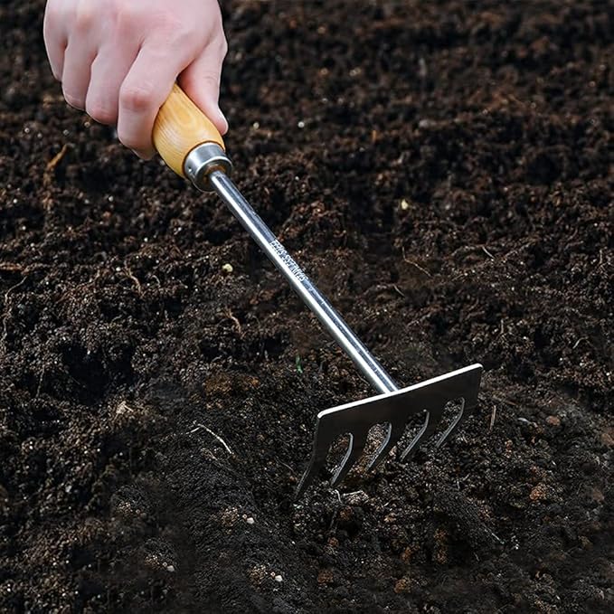 - 🍓Great Value with Original Design🥬 -- 5 Pcs Set Including Original Design Depth Mark 'T' Shape Dibber, Original Design '5-in-1" Weeding Trowel Fork, and 3 Pcs More Popular Large Trowel+Transplant Trowel+Cultivator, Suitable for All Major Gardening Tasks Such as Seeding, Transplanting, Digging, Weeding, Loosening Soil, Cutting, etc.
