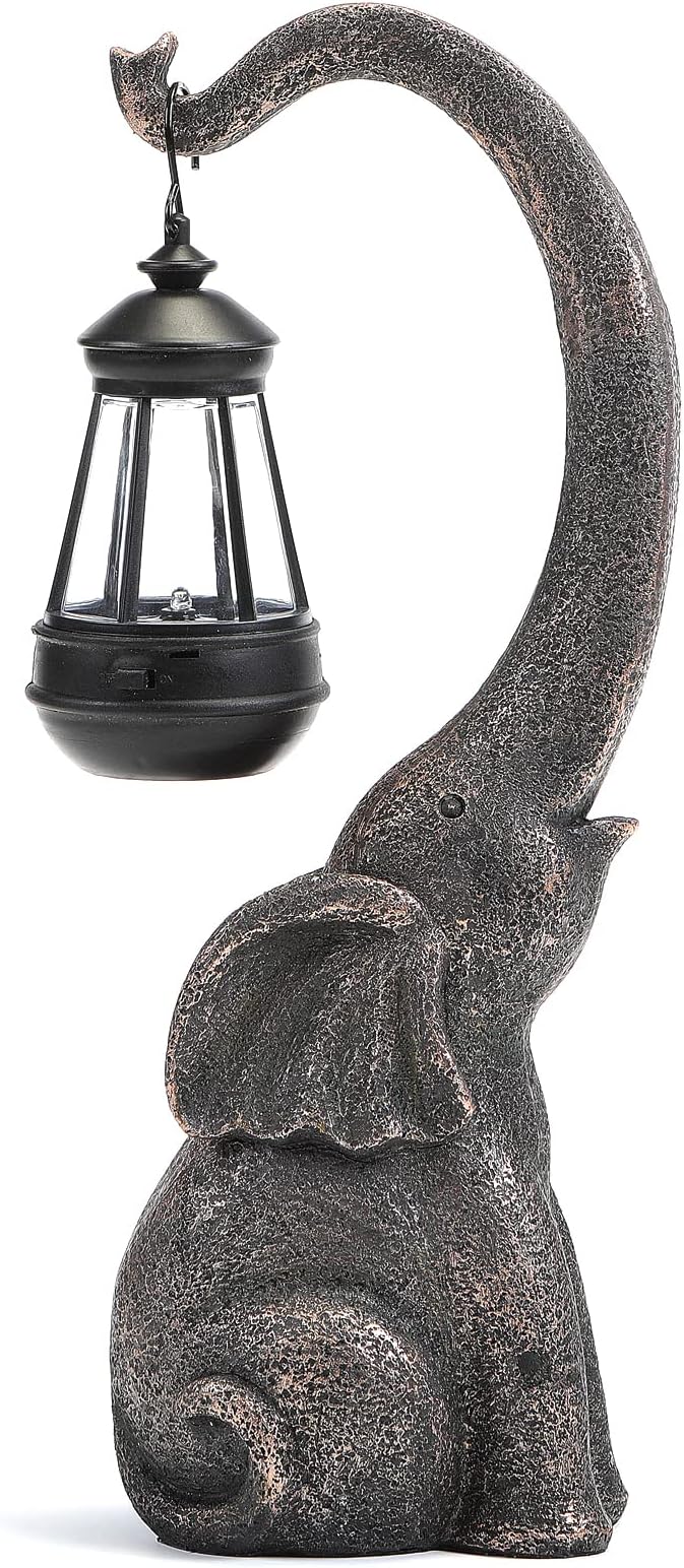- The Christmas Gift elephant statues makes a unique decoration statement in your garden, patio or interior. The style is East Asian with truck up the symbolized good luck in many cultures. This friendly elephant statue is a natural grey tone with happy face.The warm white light will make your yard more warm, so that you can illuminate your keyhole and illuminate your way home; IVCOOLE elephant will wait for you to go home every day