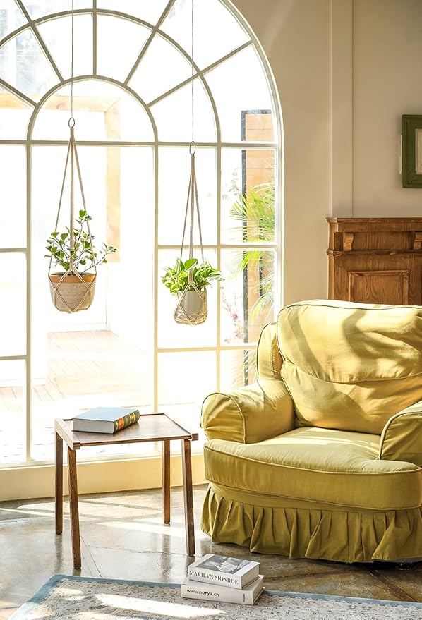 - Widely Used:2 Pack -35 inches cream indoor hanging planter hanger can fit a variety of pots, such as plastic pots, ceramic pots, glass pots, metal pots, so on. It can keep your plants out of your pet's reach and save space.