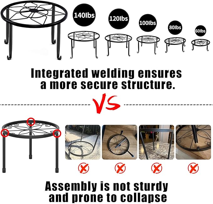 - [Metal material] This plant stand is welded with thick iron wire to make the stand hard enough, not easy to bend and cut, and not easy to deform. It is very suitable for heavy flower pots or other flower pots. Our metal flower pot holders can be used to support extra-large flower pots.