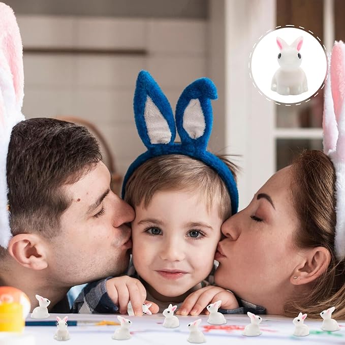 Exasinine 100Pcs Rabbit Miniature Figurines Easter Bunny Mini Rabbits Bunny Figurine Mini Resin Animals Fairy Garden Miniature Ornaments for Easter Egg Fillers Dollhouse Cake Home DéCor