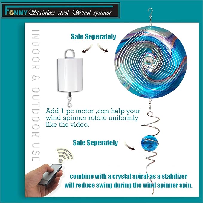 - 【WIDE RANGE OF HOME DÉCOR】Wind spinners can hang on lamps, trees, wall, balcony, window, garden, and etc. It may be used with a power operated motor so you can enjoy indoors or outdoors when there is little wind to twirl the spinner.