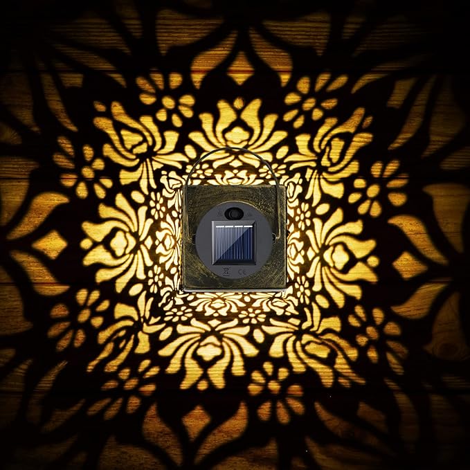 - Lantern Decorative - The outdoor lantern gives off just the right amount of soft warm yellow glow through the metal cutout surrounding it. This is not a bright lantern for reading purpose, it is more for evening decoration and mood enhancing. Solar lantern is a delightful addition to your outdoor lounging area.