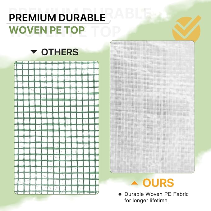 - STABLE AND STURDY: It is made of durable 150g/sgm woven PE cover with 70% light transmission. This material not only maintains the perfect temperature and moisture for plants but is also durable for long-lasting use with heavy-duty metal frame.