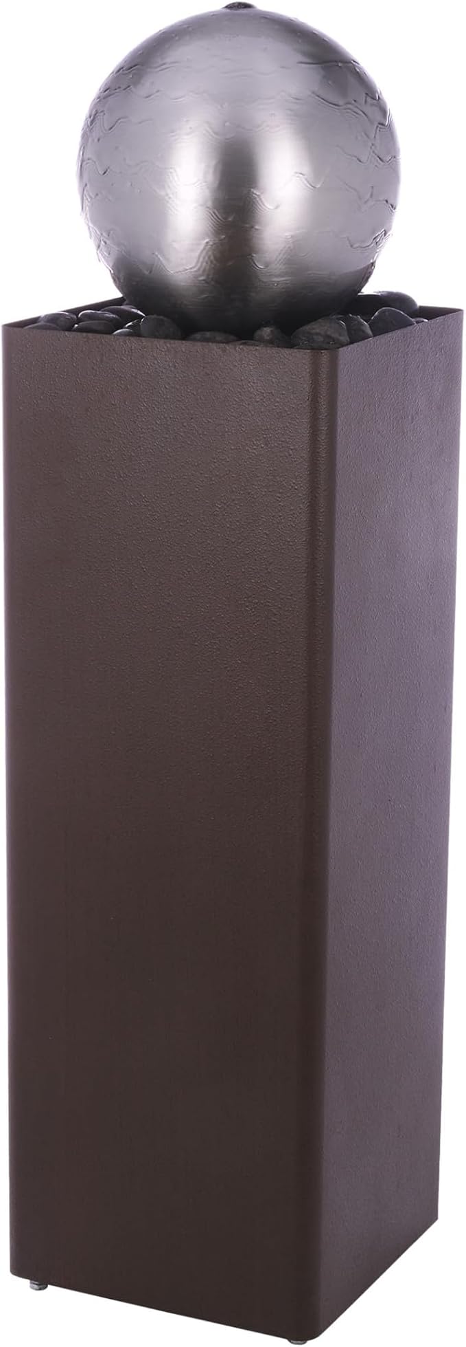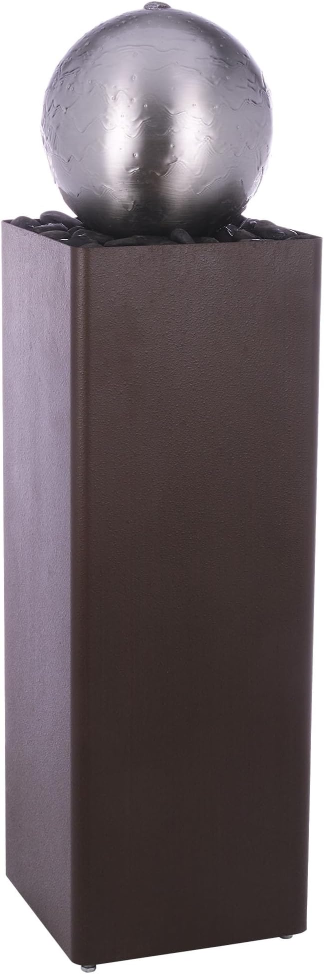 Alpine Corporation CPS188 Indoor Outdoor Modern Metal Orb Water Floor Fountain with River Rock Stone for Patio, Garden and Living Room, 37" H, Brown