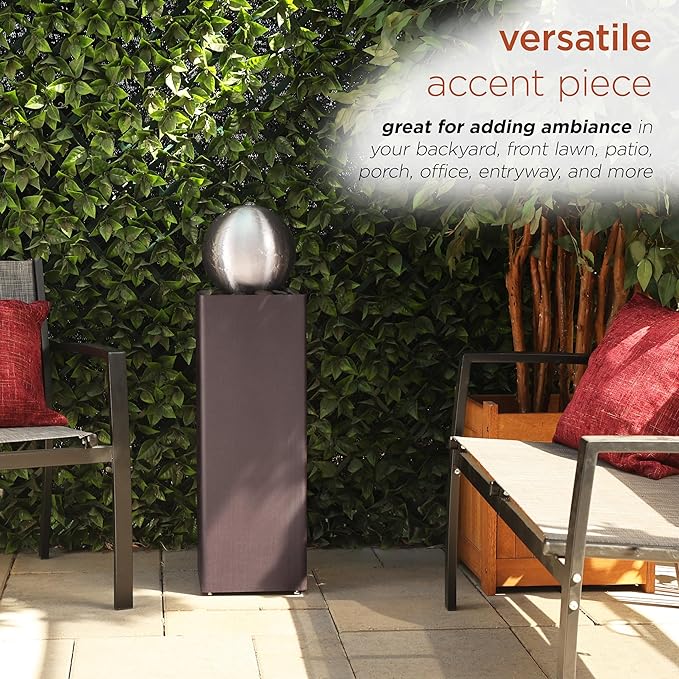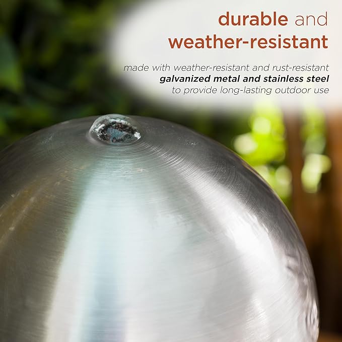 - Soothing Water Flow: This 37" fountain creates a peaceful and calming ambiance with a gentle flow of water cascading down the orb and river rocks, making it an ideal water feature for relaxation, meditation, or outdoor enjoyment.