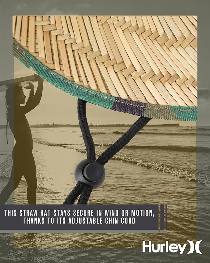 • SUN PROTECTION : Designed with a wide brim, this Hurley straw hat offers you ultimate sun protection. Keep your face, neck, and shoulders shaded from harmful UV rays during long days at the beach, on the boat, or by the pool. Whether you're wearing it for lifeguarding, fishing, or just soaking up some sun, this is the beach hat for men that ensures you stay cool, comfortable, and protected.