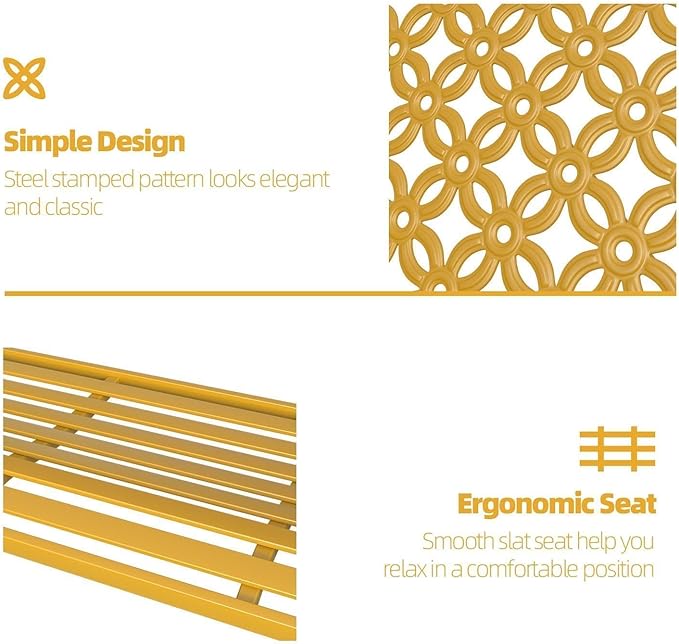 Grand patio 50" Outdoor Bench Garden Bench with Armrests Bench for Outdoors Lawn Yard Porch Sunflower Yellow