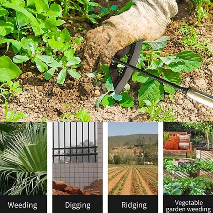- EASY TO USE: After the hoe is extended, pull it back to quickly weed. Easy to install, light and easy to use, not tired to hold. Easy and effortless weeding and soil loosening, planting flowers and vegetables is convenient. A very practical gardening tool.