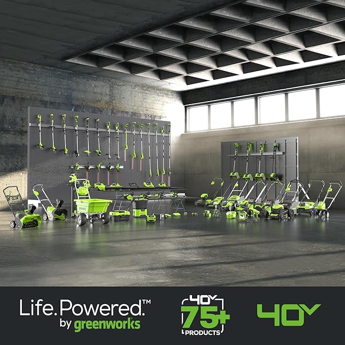 - UP TO 60 MINUTES RUN-TIME – on fully charged 4.0Ah batteries (varies based on grass condition and operator technique). Greenworks 40V battery powers 75+ indoor and outdoor products.No load speed : 6500 ±10% RPM..No load speed : 6500 ±10% RPM.