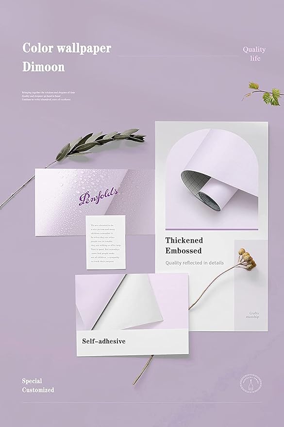 Dimoon 236''x17.7'' Purple Peel and Stick Wallpaper Contact Paper Modern Self Adhesive Wall Paper Removable Renter Friendly Textured Solid Color Shelf Cabinet Vinyl Roll (236''x17.7'',Light Purple)