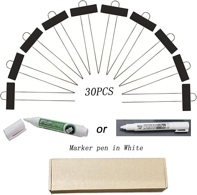 - 【PACKAGE INCLUDING】:Including 30pcs Black metal plant labels and 1pc signs pen. Black plant markers come with white pen. Label area 1.2'' x 3.5'' . Total height for 11 inch, ideals plant labels for outdoot garden waterproof, potted plants and indoor plants, plant markers for outdoor plants. It won’t hinder the growth of plants and help you with planting management.