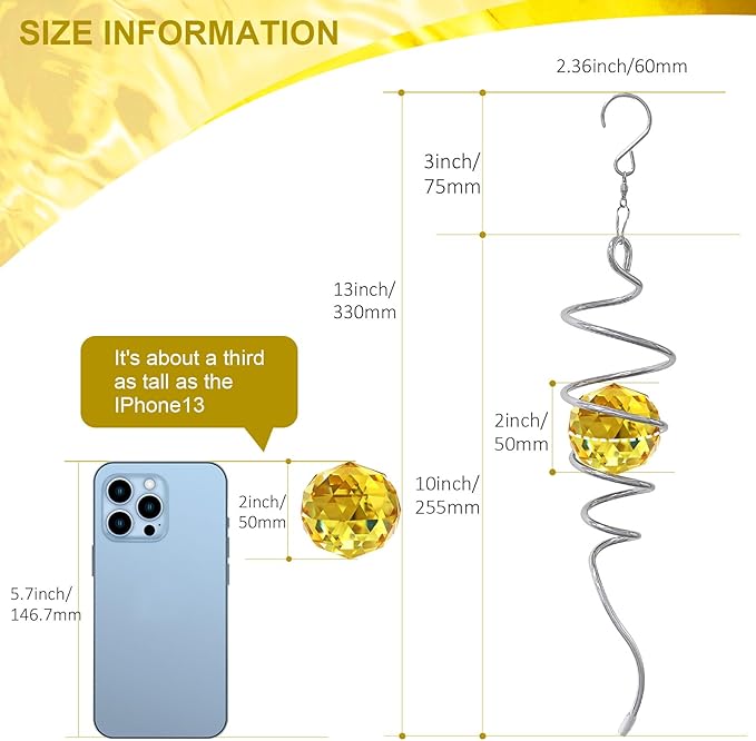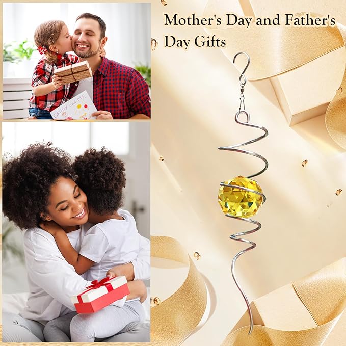 - 【 Meaningful Unique Gifts 】Golden Crystal symbolizes wealth and good fortune. The Gazing Ball Spiral Tail Wind Spinner came in a beautiful gift box that was easily giftable. This magic ball spiral tail is a wonderful gift that will be a hit as a birthday gift, Thanksgiving gift, Christmas gift, housewarming gift, garden gift, Decor gift, etc.. The wind spiral with crystal ball is a perfect gift for birthdays, Thanksgiving Day, Christmas, etc. and any you loved people ( family, friend, etc.).