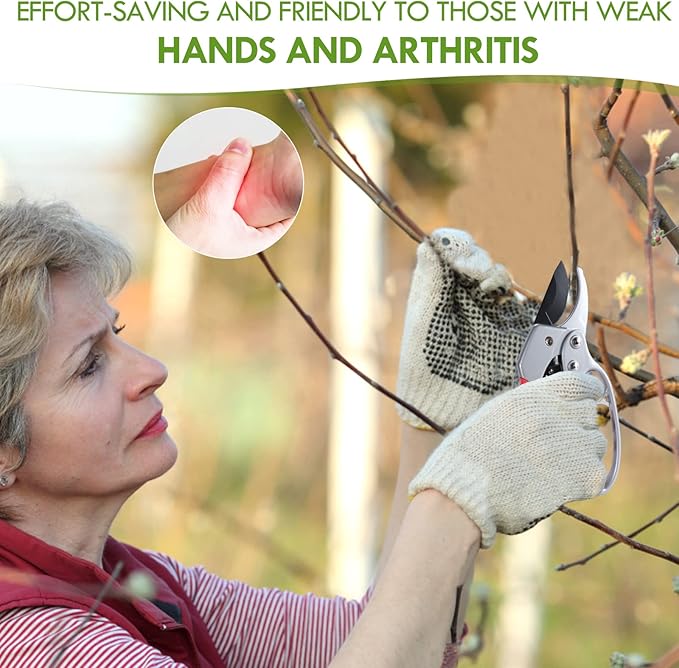 - đź’“EASY TO OPERATE AND EFFECTIVE LOCKING: The scissors are reliable and easy to use. They feel comfortable and durable, suitable for a variety of cutting tasks; Excellent ability to handle difficult tasks such as cutting grass, trimming overgrowth and cutting large diameter branches.
