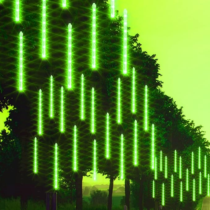 Dazzle Bright 288 LED Christmas Light, 11.8 Inch Meteor Shower Rain Lights with 8 Tubes, Waterproof Plug in Falling Rain Lights Christmas Decorations for Xmas Bushes Tree Yard Party (Green)