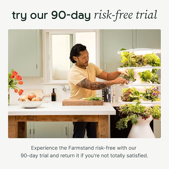 - 30 SEEDLING CREDITS: This starter kit includes a unique QR code on your Farmstand packing slip with instructions to redeem 30 seedlings from our website. Your special seedling bundle includes the best veggies, leafy greens, herbs, fruits and lettuce of the season. These pesticide free, non-GMO, pre-grown plants will have you harvesting 3 weeks early and help ensure your success. Seedlings not shippable to U.S. outlying territories.