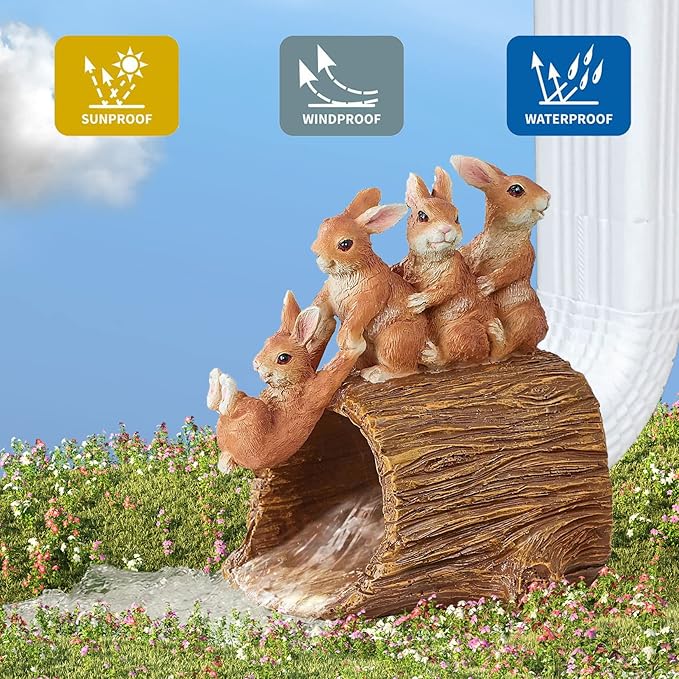 Decorative Gutter Downspout Extensions Statue, 3" x 4" Downspout Extender Outdoor Gutter Splash Block, Rabbit Decor Garden Gutter Guardian Sculpture, Garden Rain Downspout Diverter