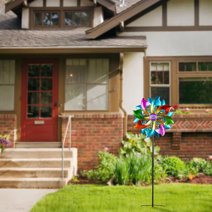 - 【Withstand all Weather】Colorful windmill blades with anti-rust coating, not easy to fade. 2 prong arch anchor stand for extra stability.