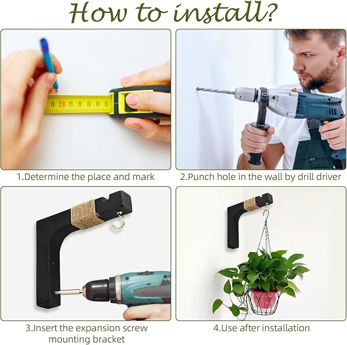 - 【Easy to Install】Our plant hanger bracket hooks have two screw holes of each and includes mounting hardware for each hanger (4 mounting screws and 4 drywall anchors). You can follow these steps to complete installtion within miniutes : find the place where you want to install, mark the hole, drill the screw hole as you makred, insert the drywall anchors then install the hanger hooks and complete.