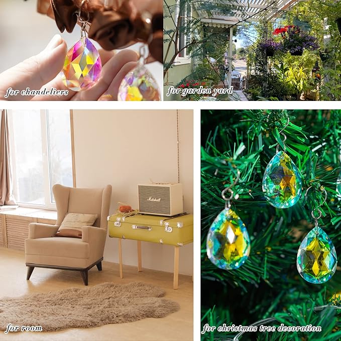 - Versatile Crystal Chandelier Parts: ideal for chandeliers, ceiling lights, and candelabra,lamp, suncatchers, crystal strands, art projects, jewelry making, garden project, weddings, baby rooms, Christmas tree decorations
