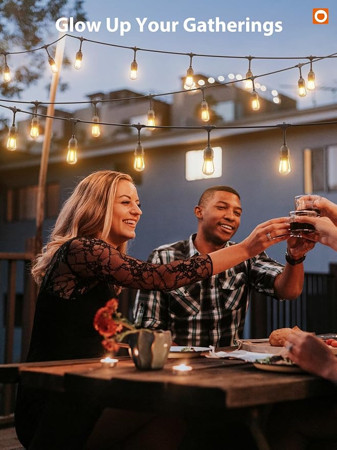 - Breathtaking Italian Bistro Style Lighting : Set Contents: 72FT outdoor string lights(36FT*2pcs). Each strand features 12 vintage-inspired hanging sockets with shatterproof LED edison bulbs, spaced 3.11 feet apart for a captivating, even glow. Enjoy brighter, energy-efficient outdoor lights that enhances every outdoor moment with timeless charm and lower electricity costs.