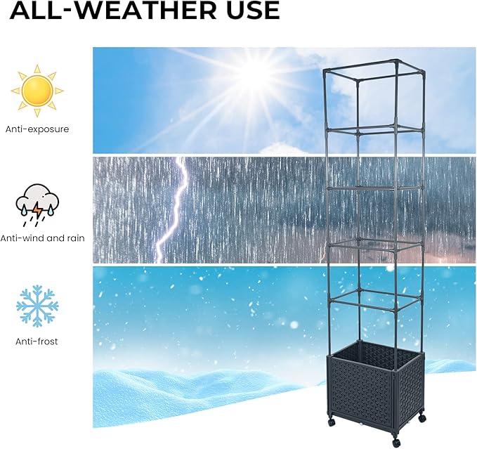 - Extensible Design: The slide panel can connector with the corner connector rods all sides. The corner connector rods also can be the legs, it can elevate the garden beds. This garden raise bed has a variety of forms and functions to meet the needs of different situations. Each foundation raise garden bed includes 4 trellis caps and 40 pcs trellis rods, and 8 holes to support extra sticks. Adjustable plant trellis to protect and support your plants all season long
