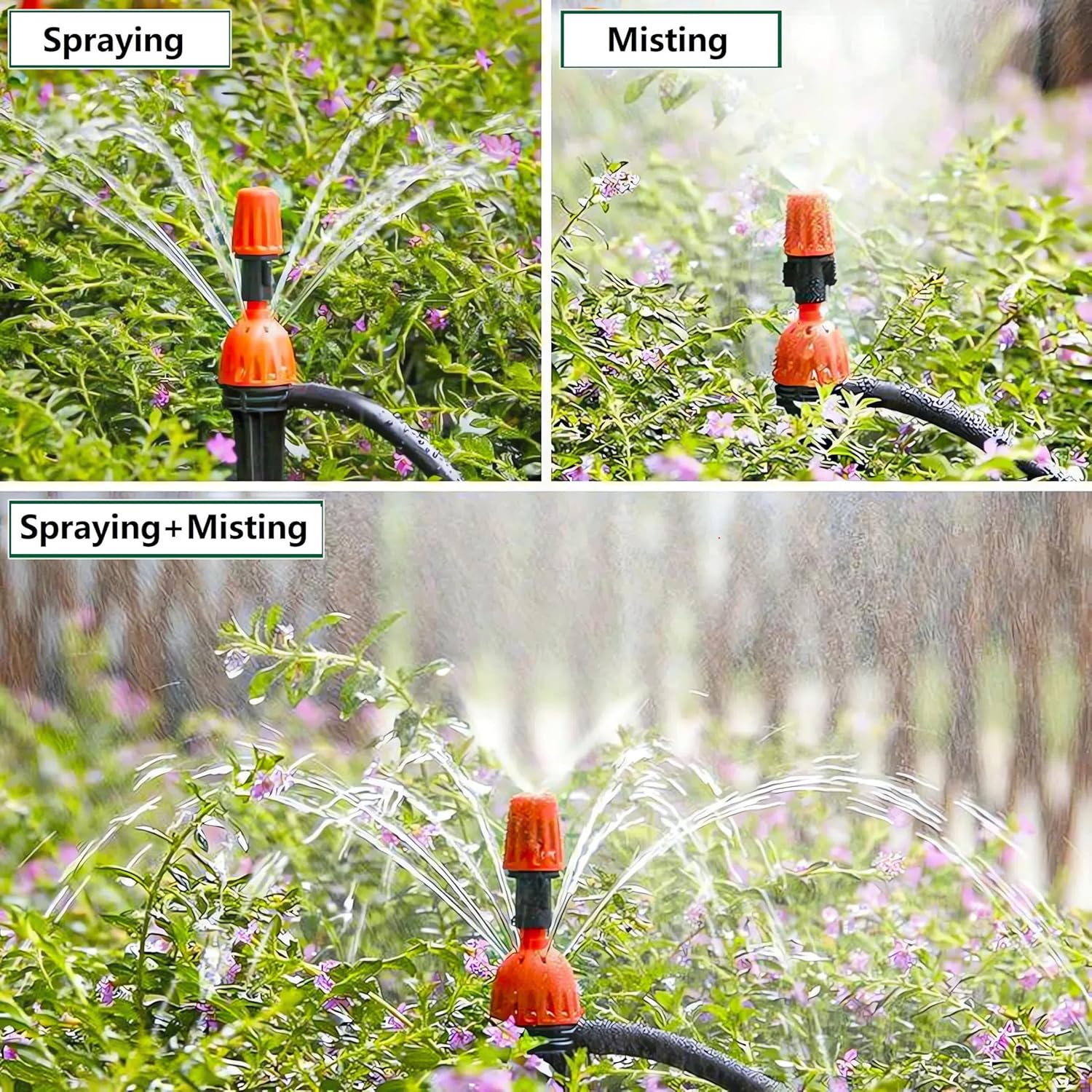 - Unique Design:1/4" drip Irrigation emitter is designed with misting nozzles and spraying holes.These drip irrigation emitters can be disassembled. If they get clogged for any reason, the drip emitter is removable for easy cleaning