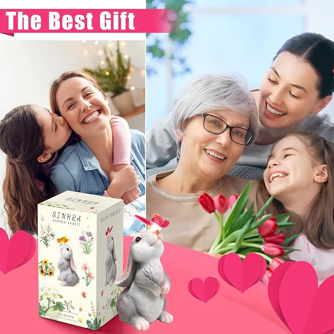 - Great Gift Idea - This fun garden figurine make the perfect gift! Whether it’s for family, friends,or coworkers, it's a great present to give on Easter Day,Christmas,Thanksgiving,Birthdays,Mother's Day,or for a housewarming! Size: 5.5" L x 4.3" W x 9.5" H.