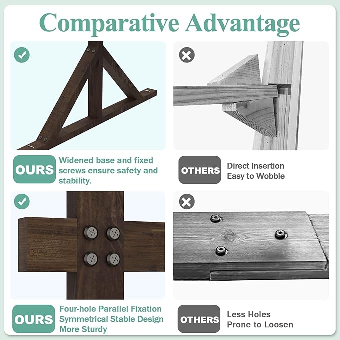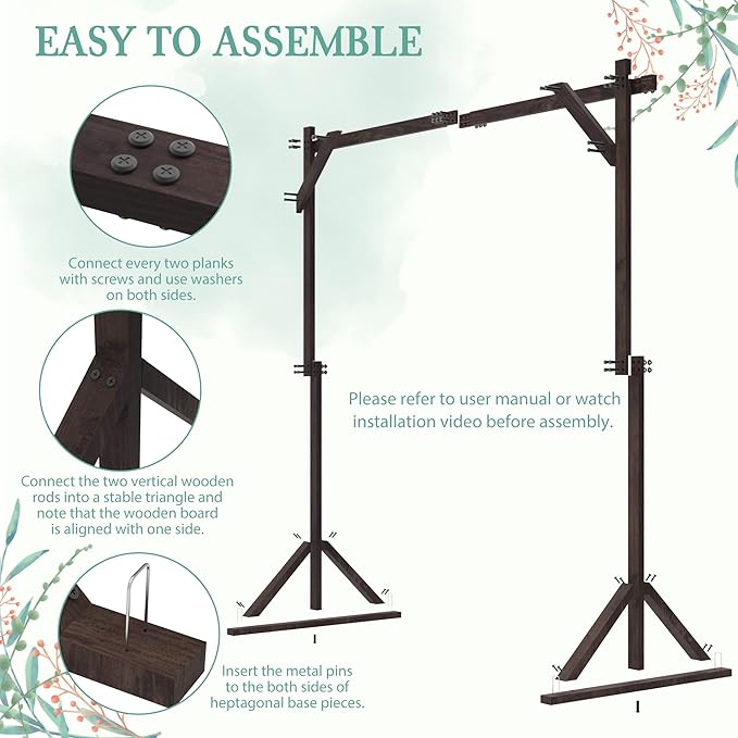 - 【Multiple Applications】The wooden wedding backdrop stand will create elegant decoration for parties, city gardens, churches, New Year, Halloween, Thanks Giving Day, Christmas, country weddings, gardens, seaside beaches, or wedding occasions with Bohemian style. Invite your families or friends to take some pictures in front of the square wood wedding arch, share joy and keep unforgettable memories.