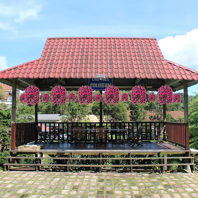 - ARTIFICIAL GREENERY DECORATION: The fake hanging flower in a basket looks real and stylish, making it the perfect hanging basket for your home, patio, balcony, garden, indoor and outdoor. It blooms all year and adds a sense of spring to your home