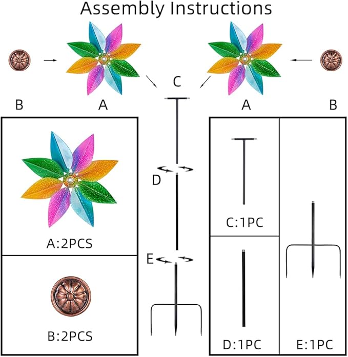 - [Easy to Assemble] DREAMYSOUL kinetic wind spinner is easy to assemble. Tighten the parts piece by piece with our instructions, and then insert metal stake into soil or grass. Enjoy the beautiful visual experience in your garden.