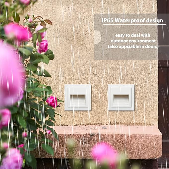 - Good quality: White shell, cool white 6000K, aluminum corner staircase light step light, IP65 waterproof, suitable for indoor and outdoor; IP65 can prevent the splashing water, but cannot be installed directly under water